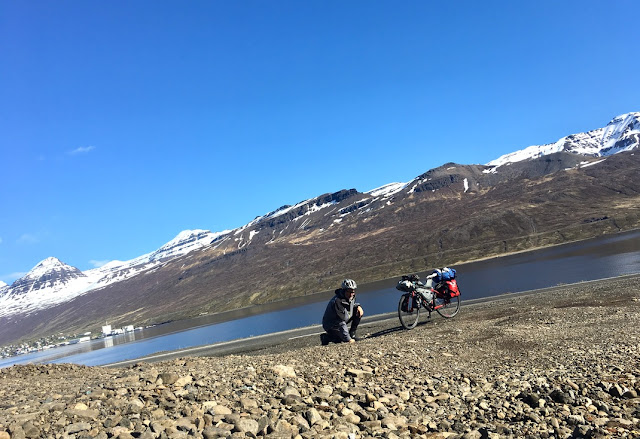 Nonostante l'evidente ottimismo la poveretta si è tranciata un tendine della mano sinistra togliendo la bici dal cartone, è stata operata ed ora ha una fasciatura rigida ed una calza di lana sulla mano, adesso procede contro un vento decisamente forte verso Vik, dove conta di imbarcarsi su autobus per arrivare in tempo a Keflavik per il volo di ritorno. Ogni volta che ti pare di fare qualcosa di impegnativo e coraggioso hai la prova che c'è chi fa molto di più e da tronfio caprone orgoglioso vieni rimesso al tuo posto dove la modestia è più consona.